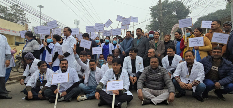 नारायणी अस्पतालमा ५ सय शैय्याको भवन निमार्णको माग गर्दै धर्ना सुरू