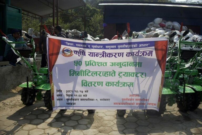 स्याङ्जाको पुतलीबजार नगरपालिकाद्धारा किसानहरूलाई १२० वटा हाते ट्रयाक्टर वितरण