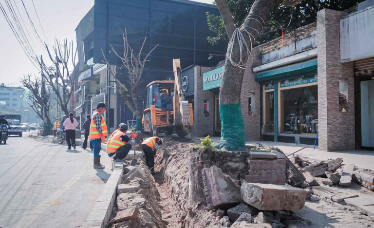 दरबारमार्गमा धमाधम फुटपाथ विस्तार गरिँदै (फाेटाे फिचर)