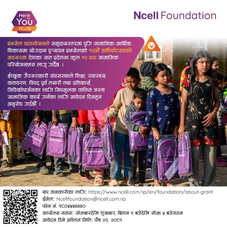 एनसेल फाउन्डेसनले समुदायको विकासमा रु. १ करोड ९० लाख भन्दा बढी योगदान गर्दै