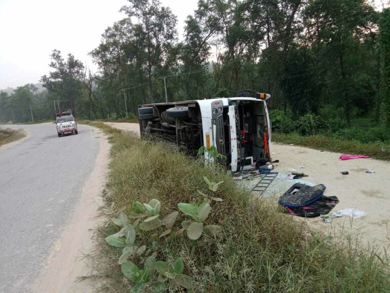 नवलपुरमा यात्रुवाहक बस दुर्घटना हुँदा २३ जना घाइते