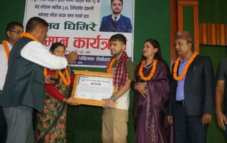 मुलुकमै सर्वोत्कृष्ट नतिजा ल्याउने विद्यार्थीलाई गोरखा स्कुलले गर्यो सम्मान