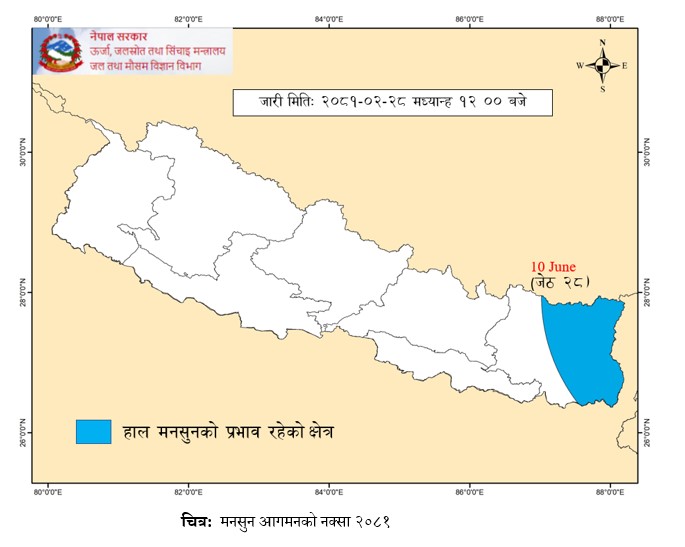 नेपालको पुर्वी भू-भागबाट मनसुन भित्रियो