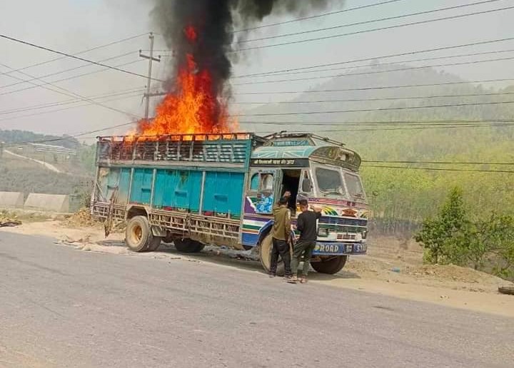 धादिङमा गुडिरहेको ट्रकमा आगलागी