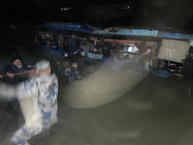 कपिलवस्तुबाट काठमाडौँ आउँदै गरेको बस त्रिसुलीमा खस्दा ६ जनाको मृत्यु, ३३ को जीवितै उद्दार