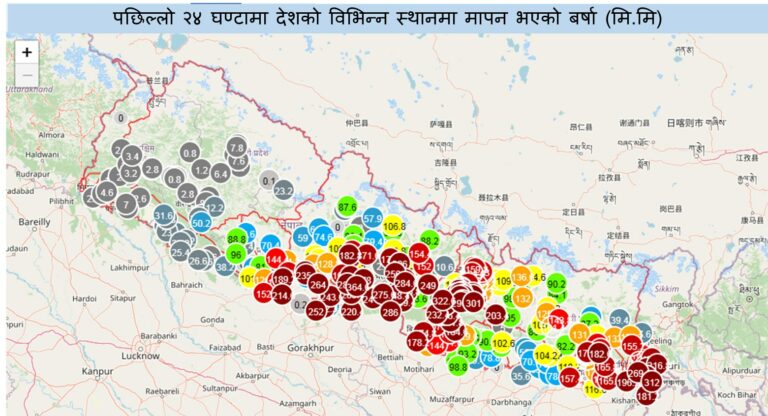 अविरल वर्षा जारी, १०१ वर्षामापन केन्द्रहरूमा नाघ्यो सतर्कता तह