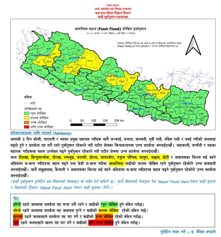 बाढीको जोखिम घट्दो क्रममा, आगामी तीन दिन कुन नदीमा कति जोखिम?
