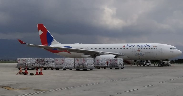चीनबाट १० लाख डोज भेरोसेल खोप लिएर वायुसेवा निगमको जहाज काठमाडौं आइपुग्यो